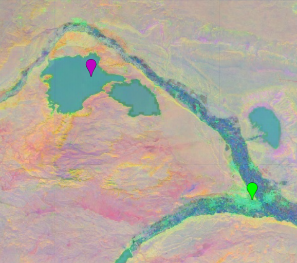 El script detecta cuerpos de agua identificando píxeles cuyos embeddings satelitales sean similares a los embeddings promedio de un conjunto de polígonos de agua que vos definís como referencia. Para eso usa el mosaico anual de GOOGLE/SATELLITE_EMBEDDING/V1, obtiene en cada polígono un vector representativo del comportamiento espectral-temporal y luego compara cada píxel de la ROI con todos esos vectores mediante similitud coseno, quedándose con el valor más alto para capturar el “tipo de agua” más parecido.
