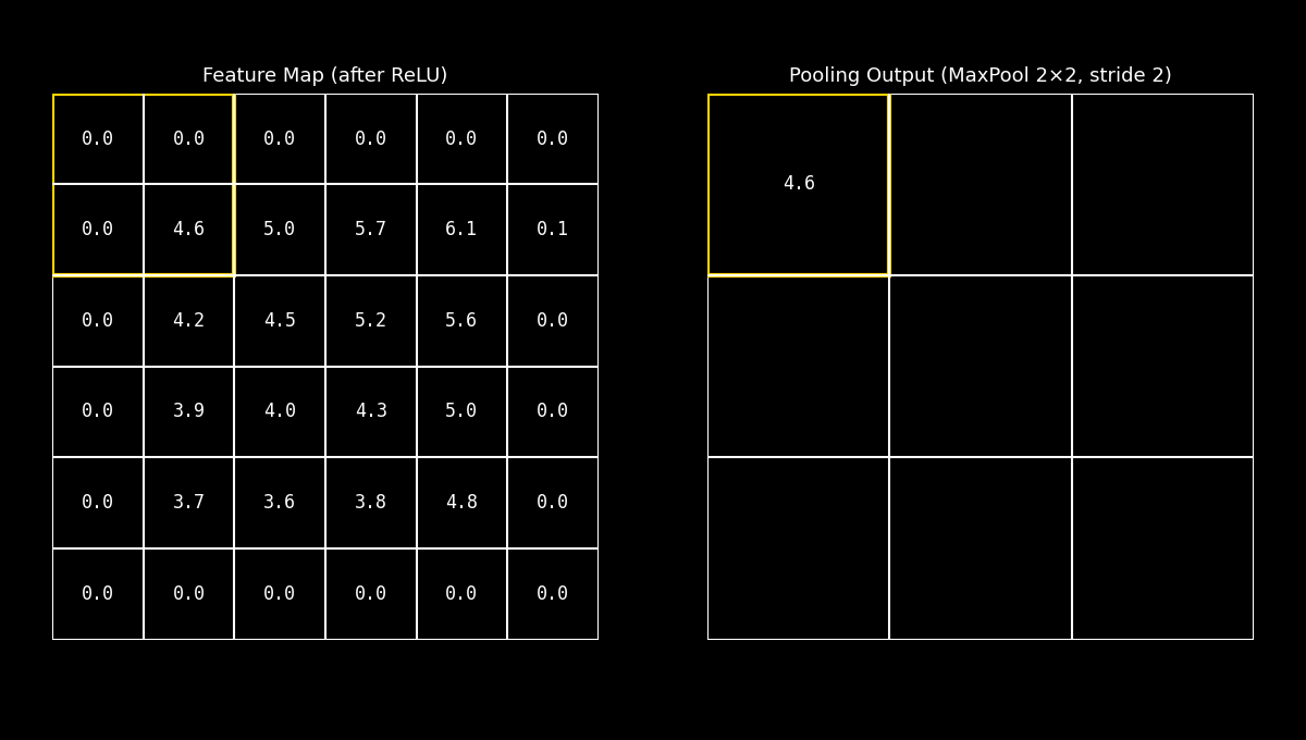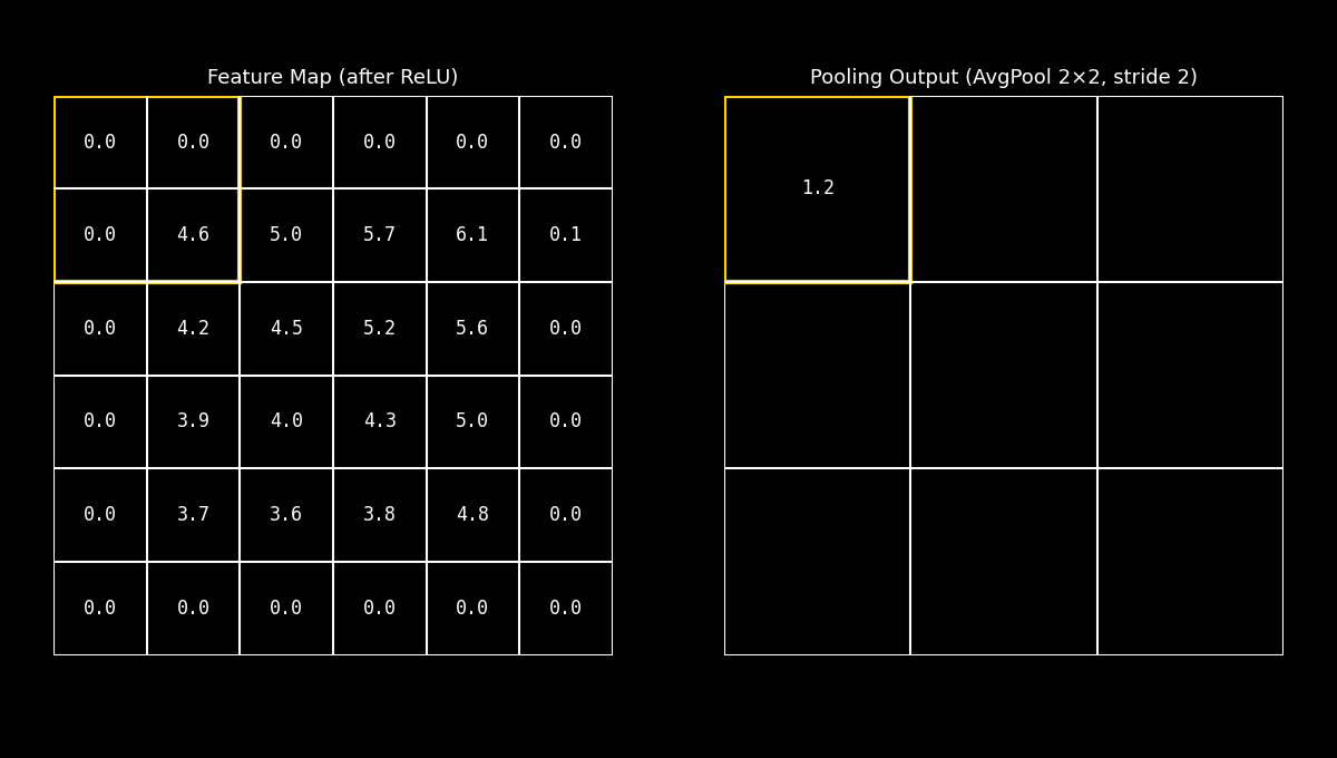 Como nuestro parche mide 6×6 y el filtro 3×3, y estamos avanzando de a un píxel (stride = 1), el tamaño de la salida será: \((6 - 3 + 1) \times (6 - 3 + 1) = 4 \times 4.\)