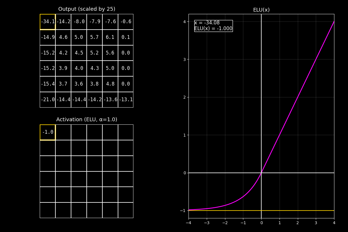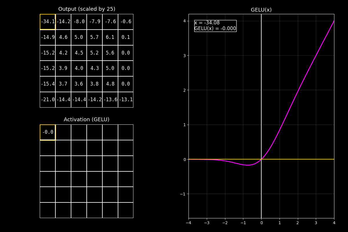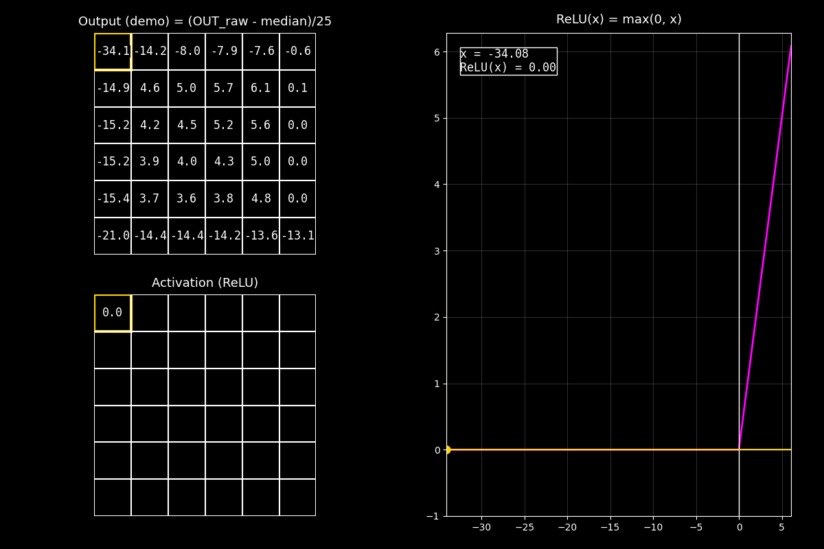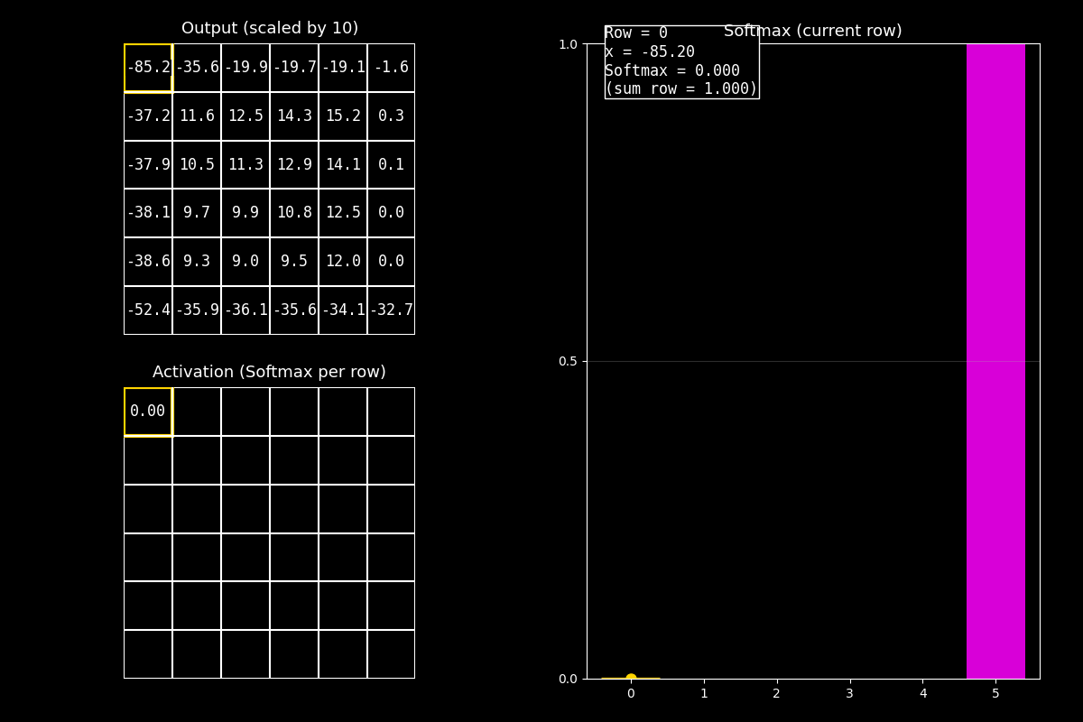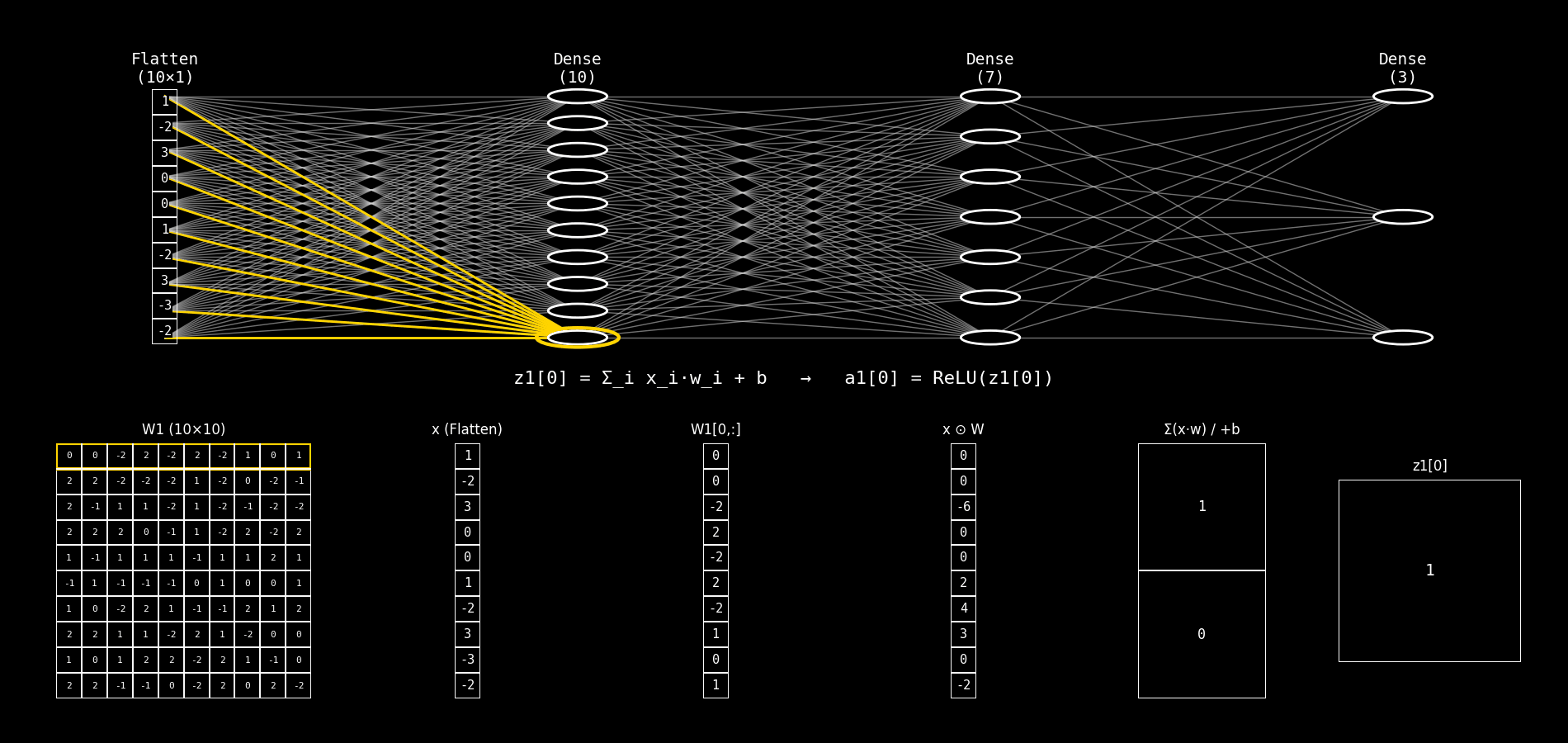 Desde un punto de vista conceptual, esta visualización refuerza la idea de que una fully connected no debe entenderse como un conjunto de cálculos independientes, sino como una composición de funciones que actúan de manera secuencial sobre una representación global. Cada capa densa recibe como entrada el resultado activado de la capa anterior, lo que implica que las decisiones finales no dependen directamente del input original, sino de una representación progresivamente abstracta aprendida por la red. En este sentido, el GIF integrador ilustra de forma compacta cómo las operaciones del álgebra lineal —vectores, matrices, productos punto y bias— se articulan dinámicamente para convertir características extraídas por la CNN en una respuesta final en el espacio del problema, cerrando el proceso de razonamiento y decisión de la red.